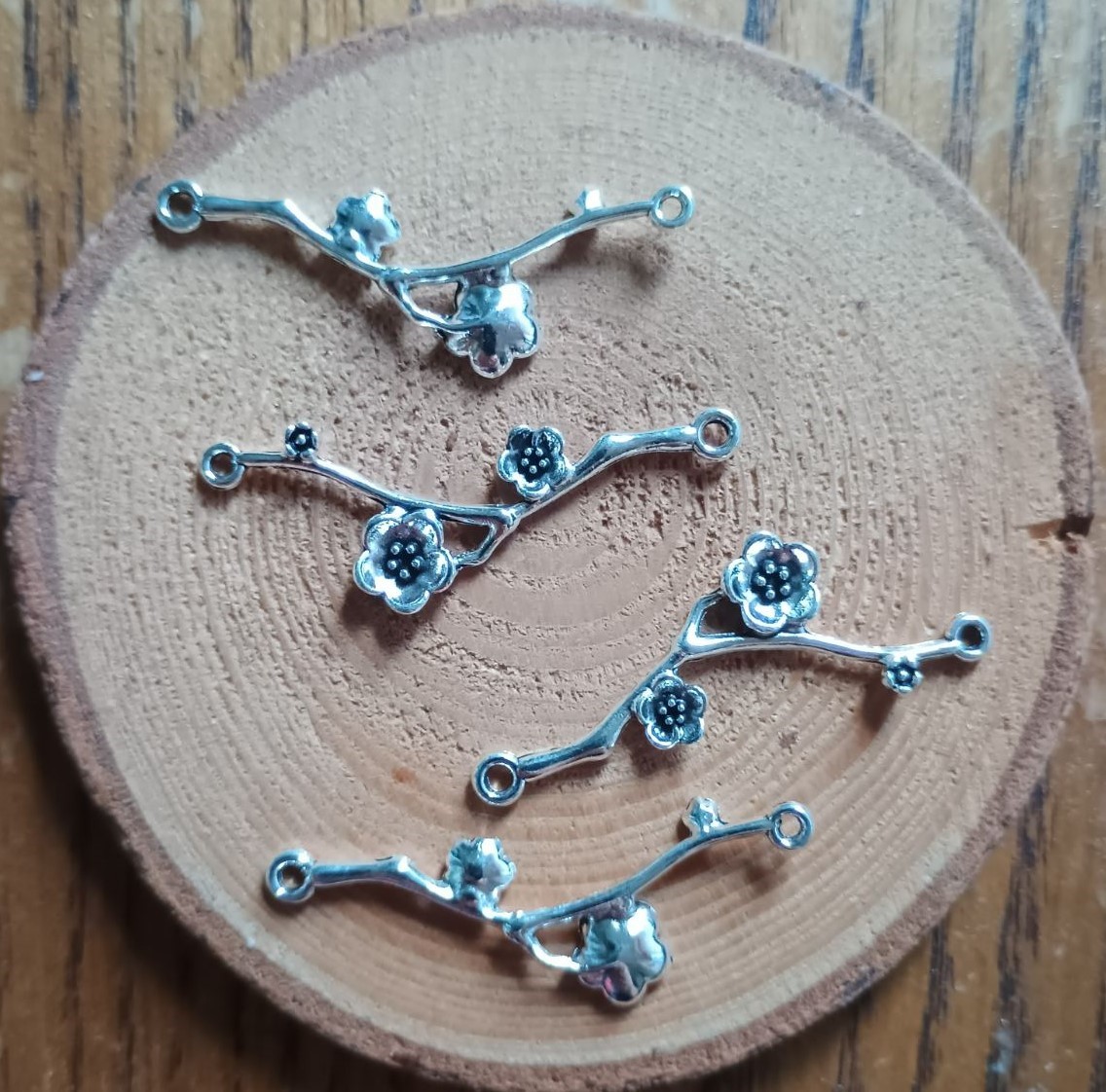 Introduction » Декор і підвеси металеві » Конектор Гілка з Квітками, метал, срібло, 37*24 мм, R19071