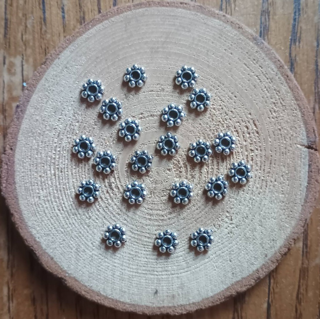 Намистина - проставка 7 крапок, метал, срібло, 6х1,5 мм., R19101